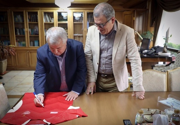 اهدای پیراهن علی پروین به شهرداری تهران