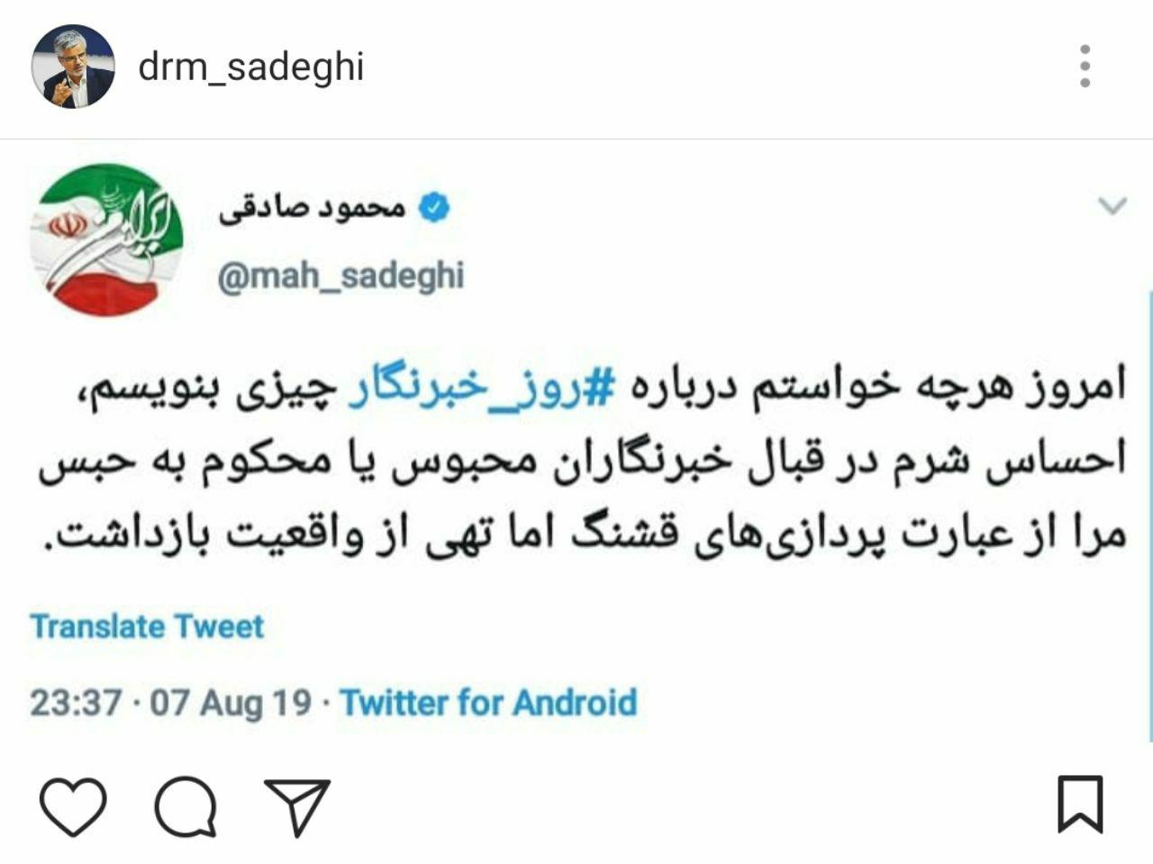 توییت محمود صادقی به مناسبت روز خبرنگار (عکس)