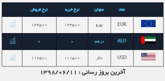 قیمت خرید هر یورو نیز ۱۲ هزار و ۳۵۰ تومان و فروش ۱۲ هزار و۴۵۰ تومان رسید.
