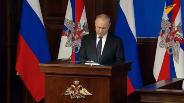 ولادیمیر پوتین، رئیس‌جمهوری روسیه در سخنانی در هیات وزارت دفاع روسیه درباره فعالیت‌های نظامی مختلف این کشور در سال ۲۰۱۹ سخنرانی کرد. همچنین انتظار می‌رود رئیس کشور روسیه اهداف جدیدی برای ارتش در سال آتی میلادی تعیین کرده و حوزه‌های توسعه که برای ارتش و نیروی دریایی طراحی شده است، اعلام کند.