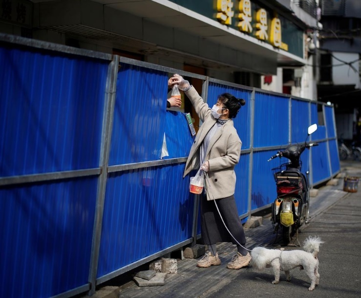 مردم ووهان در حال خرید و فروش از روی دیوارهای جداکننده قرنطینه- استان هوبی- چین/ عکس:رویترز
