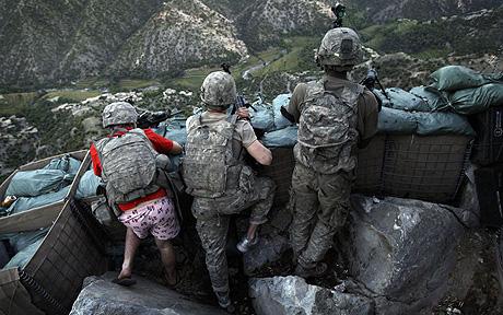 عکس کنار تصویر سرباز آمریکایی است که بعد از حمله طالبان به مواضع آنها در کونار افغانستان فرصت پوشیدن لباس نظامی اش را پیدا نکرده است.