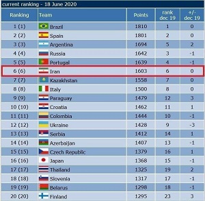 ملی پوشان فوتسال ایران فاصله ۱۰ پلهای خود با تیم دوم قاره یعنی ژاپن ۱۳۶۸ امتیازی را حفظ کرده است. تیم ملی فوتیال تایلند هم پشت سر ژاپن در رتبه ۱۷ جدول رده بندی قرار دارد. تیمهای قزاقستان و ایتالیا هم به ترتیب در جایگاه هفتم و هشتم رنکینگ جهانی پشت سر ایرانیها قرار دارند.