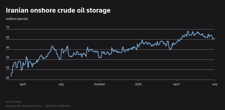 بر مبنای تخمین شرکت FGE Energy" میانگین ذخیره نفت خام ساحلی ایران که در ژانویه سال جاری میلادی 16 میلیون بشکه بوده در ماه آوریل امسال به 54 و در ژوئن به 63 میلیون بشکه رسیده است.