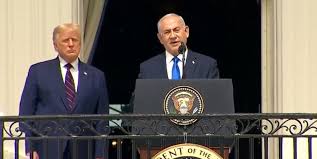 نتانیاهو در مراسم امضای توافق سازش در کاخ سفید که با حضور رئیس جمهور آمریکا، وزیران امور خارجه امارات و بحرین گفت که تاریخ به ما نشان داده که قدرت، امنیت می‌آورد.