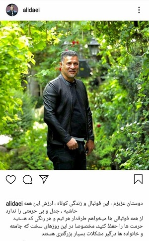 دوستان عزیزم، این فوتبال و زندگی کوتاه، ارزش این همه حاشیه، جدل و بی‌حرمتی را ندارد. از همه فوتبالی‌ها می‌خواهم طرفدار هر تیم و هر رنگی که هستید حرمت‌ها را حفظ کنید، مخصوصا در این روزهای سخت که جامعه و خانواده‌ها درگیر مشکلات بسیار بزرگتری هستند.