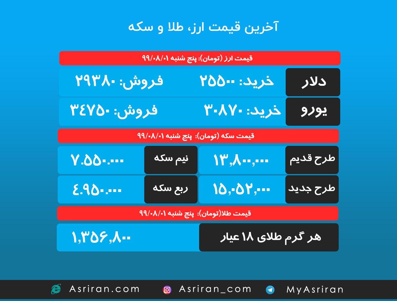 آخرین قیمت ارز، طلا و سکه / پنج شنبه 1 آبان 99