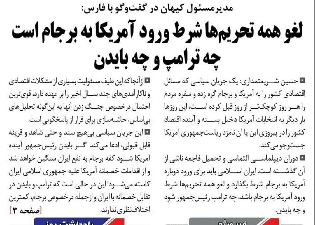حسین شریعتمداری مدیر کیهان: لغو همه تحریم ها شرط ورود آمریکا به برجام است