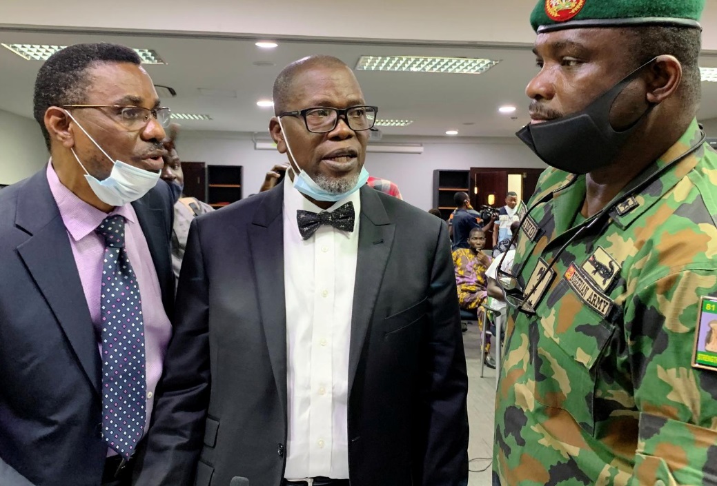 "احمد تایوو" فرماند تیپ 81 در لاگوس نیجریه در تحقیقات تیم قضایی این کشور در باره رفتار خشن نیروهای نظامی و کشتار معترضان صلحجو به سوالات پاسخ میدهد/ عکس: رویترز