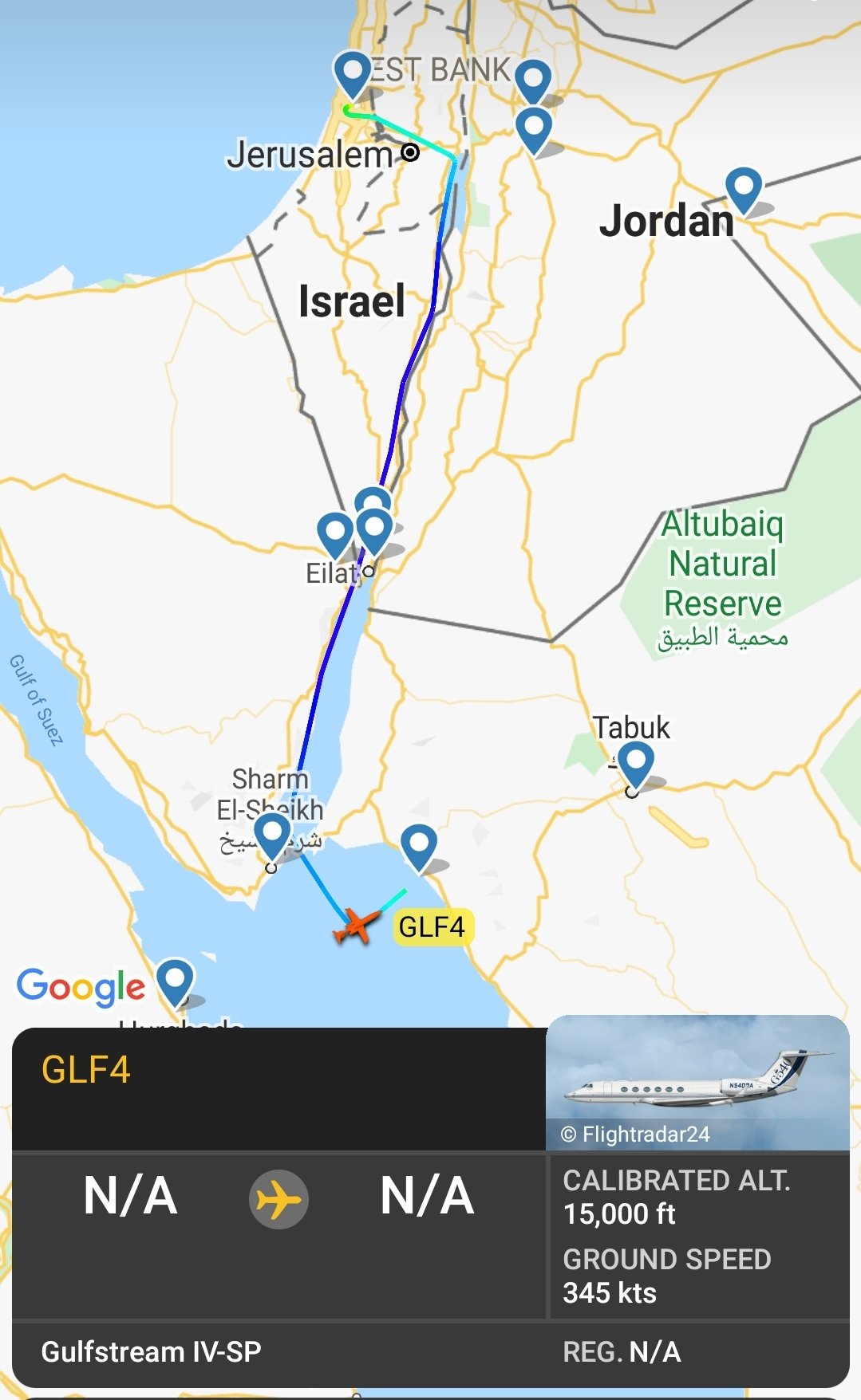 این سفر با یک فروند هواپیمای خصوصی متعلق به یکی از بازرگانان اسرائیلی انجام شده است. این هواپیمای اختصاصی در اروپا به ثبت رسیده است.