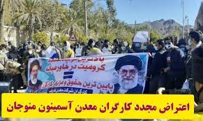 ۱۲۰۰ کارگر معدن کرومیت آسمینون در جنوبیترین منطقه استان کرمان این روزها به دلیل تعطیلی معدن بیکار شدهاند و خواستار رفع موانع تولید و بازگشایی معدن هستند. معدن کرومیت آسمینون در شهرستان منوجان در جنوبیترین منطقه در استان کرمان قرار گرفته است.