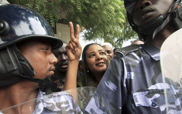 " لوبنا حسین " زن روزنامه نگار سودانی که به جرم پوشیدن شلوار دادگاهی شده است پس از اینکه از جلسه دادگاه بیرون می آید .دادگاه او به تعویق افتاد . او انتظار جاری شدن حد (شلاق) را می کشد.
