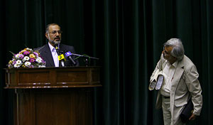 اين امر سبب شد تا جهرمي سخنان خود را کوتاه کند سپس ماموران حراست اين فرد ناشناس را از صحنه خارج کردند.