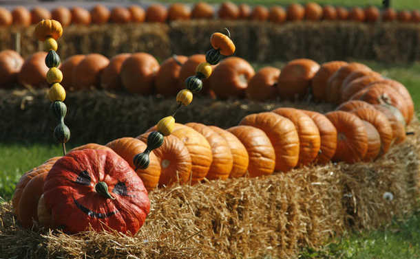 کدوهای قطار شده در مزرعه ای واقع در هلشتاین آلمان