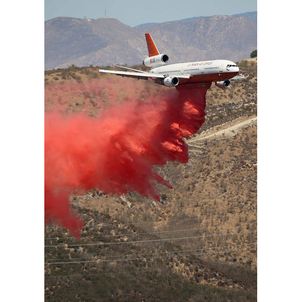 جت مدل دی.سی 10 در حال مهار آتش سوزی کالیفرنیا