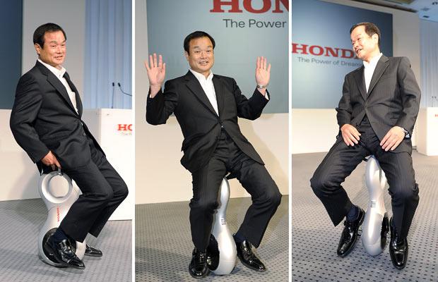 تاکانبو ایتو مدیر شرکت هوندا در حال نمایش دوچرخه تک نفره این شرکت