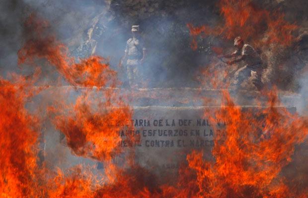 شعله های آتش بر اثر سوزاندن محموله ماری جوآنا در مکزیک