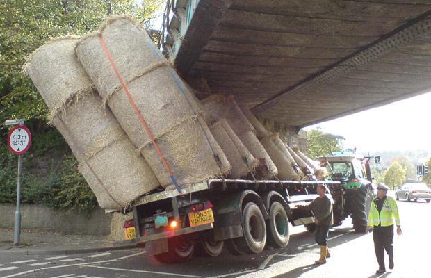اسیر شدن یک تریلی در اسکاتلند زیر پل روگذر قطار