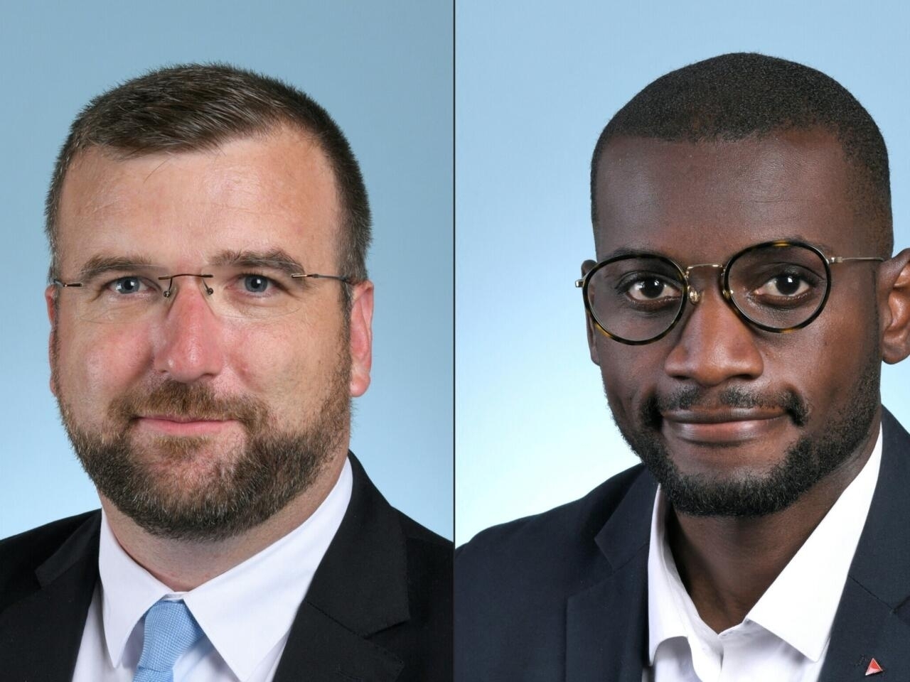 کارلوس ماتنیز بیلونگو" نماینده چپ و آفریقایی تبار پارلمان فرانسه (راست) گریگوری دی وورنا" نماینده راست افراطی و عضو حزب "مجمع ملی فرانسه" (چپ)