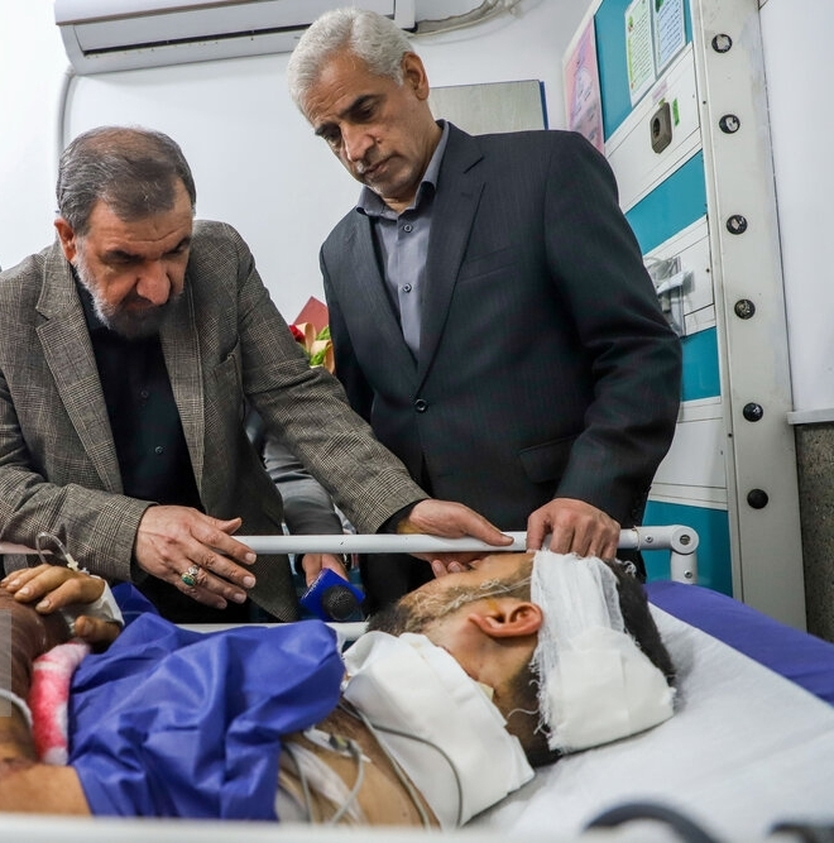 معاون اقتصادی رییس جمهور از مصدومان حادثه تروریستی ایذه که در بیمارستان های اهواز بستری هستند، عیادت کرد. محسن رضایی که جمعه ۲۷ آبان برای حضور در جلسه شورای تامین خوزستان جهت بررسی حادثه تروریستی ایذه و حضور در مراسم تشییع پیکر شهدای این حادثه به استان سفر کرده بود، امشب نیز از مصدومان این حادثه عیادت کرد.