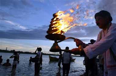 اجراي مراسم مذهبي در کنار رود گانگ الله آباد هند