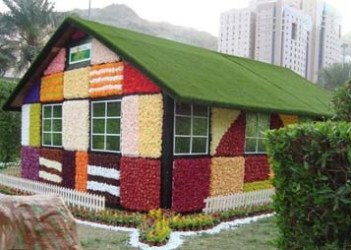 اين خانه كه نماي با گل تزئين شده، توسط شركت ساختمان "علوان" در نزديكي يكي از پاركهاي نزديك به خانه خدا ساخته شده است. / منبع :شیعه آنلاین