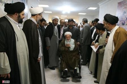 ورود آیتالله یزدی به همایش دادگاه ویژه با ویلچر