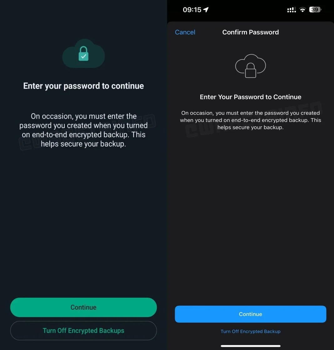 بر اساس گزارشهای WABetaInfo، از کاربران خواسته میشود پس از بهروزرسانی به آخرین نسخه برنامه، رمز عبور ۶۴ رقمی خود را برای پشتیبانگیری رمزگذاریشده وارد کنند. دسترسی به برنامه تا زمانی که رمز عبور صحیح وارد نشود یا پشتیبانهای رمزگذاری شده خاموش نشود، محدود میشود.