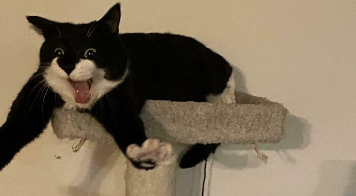 مهموووون! "گربه‌ای که در حال فریاد زدن می‌بینید اسمش میلیه. میلی عادت داره هروقت کسی به درِ خونمون نزدیک شد به این شکل به اهالی خونه هشدار بده."