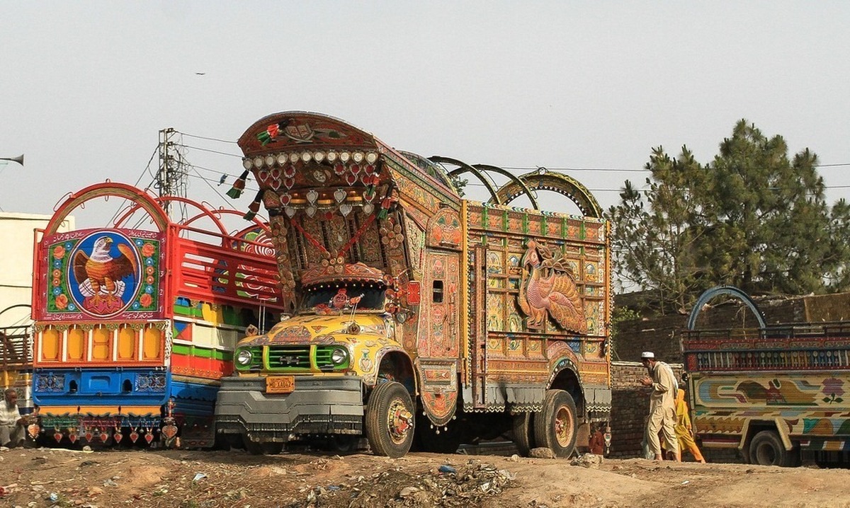 این کامیون‌ها که در شاهراه‌های ملی پاکستان و کشور همسایه افغانستان تردد می‌کنند، خودنمایی می‌کنند. کل کامیون‌ها، از بالا تا پایین، آمیزه‌ای متنوع از رنگ است.