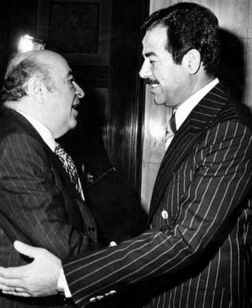 استقبال امیرعباس هويدا (نخست وزیر) از صدام حسین (معاون رییس جمهور عراق) پس از امضاي پيمان الجزاير - تهران - 1975