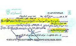 اين چك به تاريخ 17 آبان 88 و توسط شركت كارگزاري بهمن و نزد شعبه بانك ملي شعبه بورس و به حساب شركت سپرده مركزي اوراق بهادار و تسويه وجوه بابت 20 درصد حصه نقدي بلوك 50 درصدي مخابرات صادر شده است.