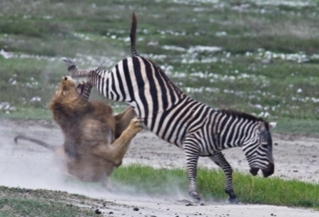 همیشه که قرار نیست شیر برنده باشد . با این لگد ، فک شیر حالا حالاها به کارش نمی آید!